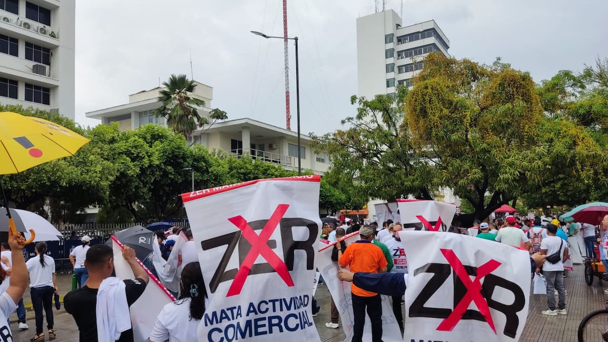 Los propietarios, administradores y trabajadores del comercio llenaron las calles, dejando sus locales cerrados, lo que no les representa ganancias en este día.