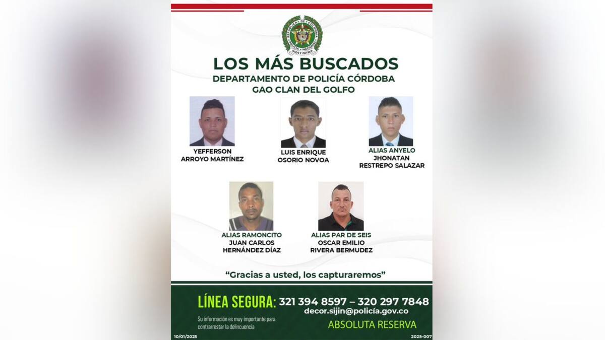 En el volante que ya circula en redes sociales aparecen Yeferson Arroyo Martínez; Luis Enrique Osorio Novoa; Jhonatan Restrepo Salazar, alias ‘Anyelo’; Juan Carlos Hernández Díaz, alias ‘Ramoncito’, y Óscar Emilio Rivera Bermúdez, alias ‘Par de Seis’.