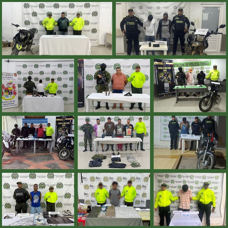Los capturados cumplían roles de sicarios, extorsionistas, observadores criminales, logísticos y de almacenamiento y dosificación de estupefacientes en estas zonas del departamento de Córdoba.