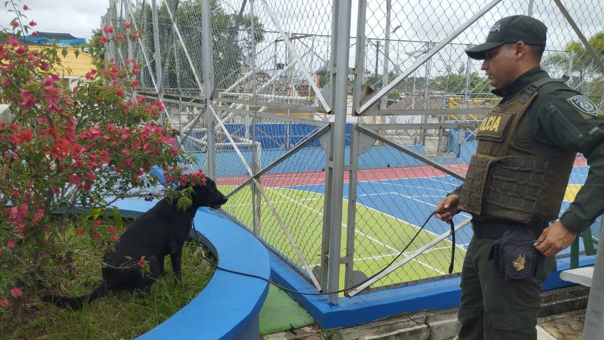 Suly, un canino que acompaña al personal de Carabineros de la Policía en Córdoba, descubrió en un parque del municipio de Chinú varias dosis de estupefacientes que estaban ocultas dentro de paquetes de mecatos.