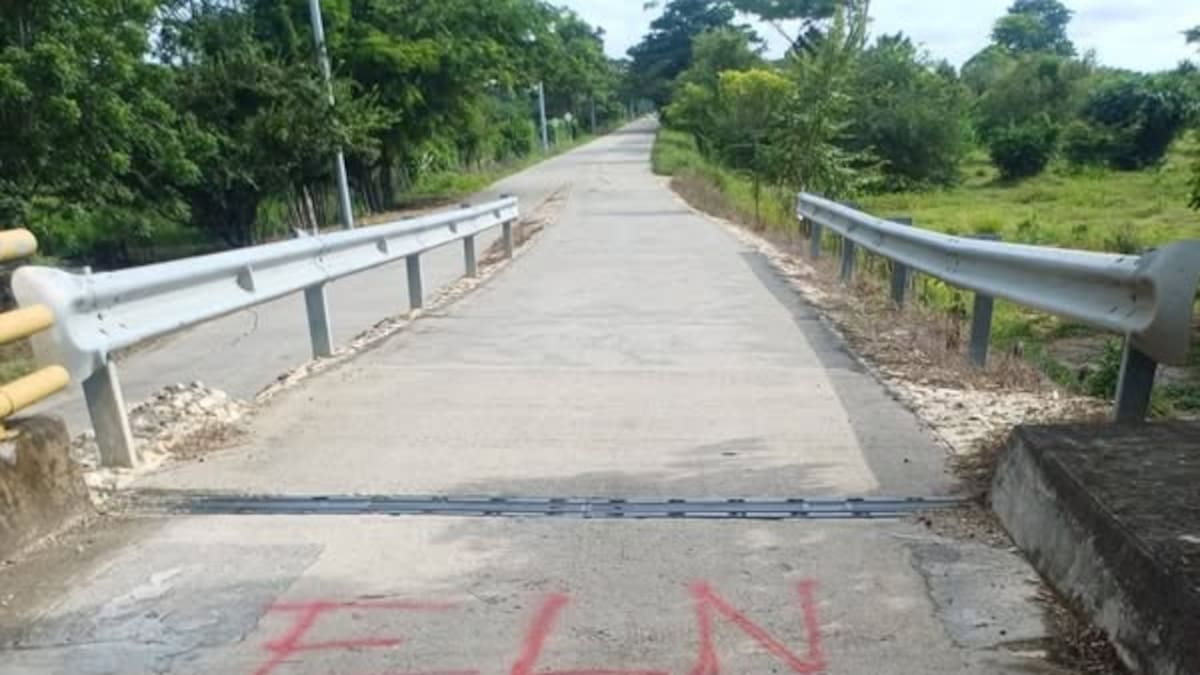 Luis Roberto Quintana, secretario de gobierno de Chimá, aseguró que los letreros del ELN están impresos en la vía que conecta a esta población con la de Ciénaga de Oro, a su paso por los corregimientos de Arache y Sitio Viejo.