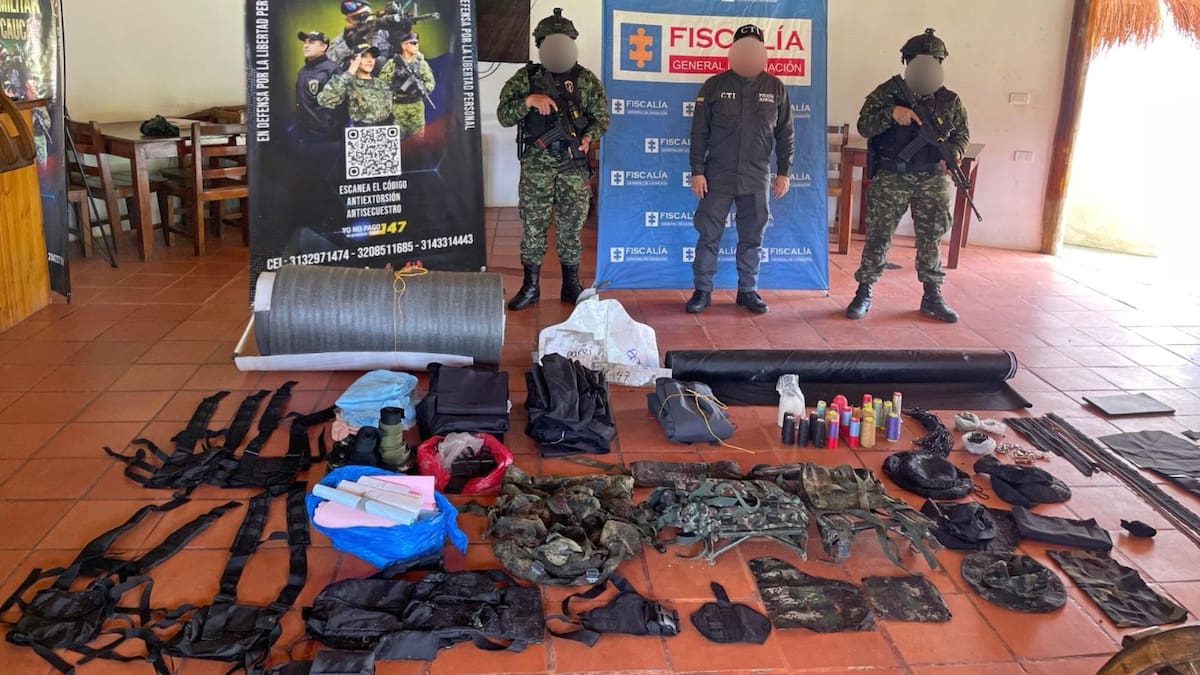 En el lugar confeccionan las prendas y artículos de campaña de uso privativo de la Fuerza Pública, y entre el material hallado, que está avaluado en 6 millones de pesos, están 20 metros de reata de diferentes colores, 3 toldillos, 2 equipos de campaña, 2 riñoneras, 4 pavas, 24 rollos de hilo, 100 botones y 100 seguros plásticos.