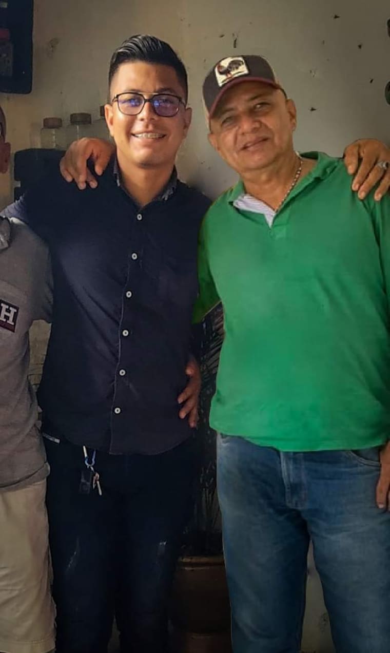 CortesíaHugo González Pabón junto a su padre, el dragoneante Hugo Alberto González Cordero, asesinado por otro de sus hijos el 9 de julio de 2023.