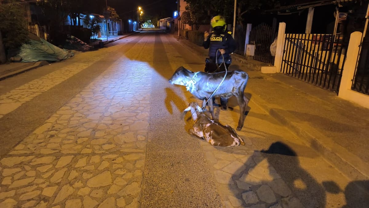 La frustración del hurto de estas reses se produjo a las 12:40 de la madrugada de este martes 23 de diciembre y para ello fue fundamental la información que la ciudadanía le entregó a la Policía Nacional.