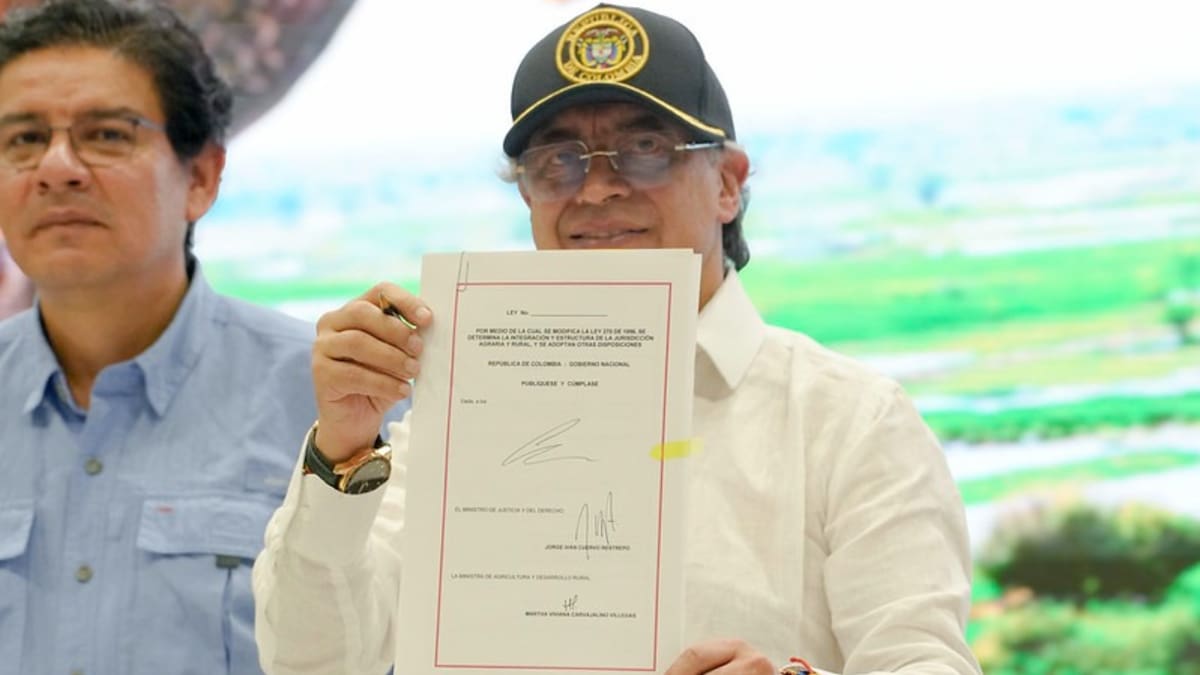 La mencionada ley, hecha según Petro “para hacer la paz y beneficiar al campesinado”, permite que “cuando haya conflictos entre el grande y el pequeño, no sea el machete sangriento, no sea la sierra eléctrica ensangrentada el camino de la solución, que sean los jueces, que sean los magistrados, que sea la justicia que rápidamente dirima el conflicto de cercas, el límite, que sea una justicia al servicio del pueblo, no del poderoso”.