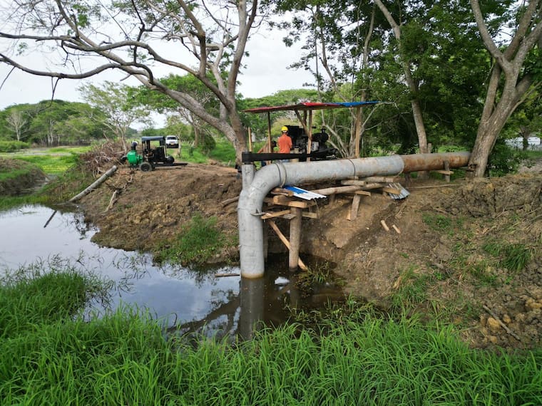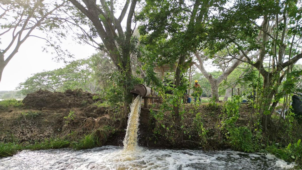 A través de la instalación de motobombas de alta capacidad —145 caballos de fuerza y capacidad de succión de 65,000 litros por minuto—, han logrado la evacuación de más de 1.170.000 de metros cúbicos de agua hacia el río Sinú en el último mes.