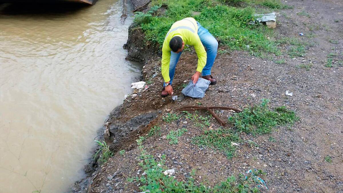 Este domingo, funcionarios ambientales de la empresa adelantaron 'labores de análisis' en la ribera del río Sinú.