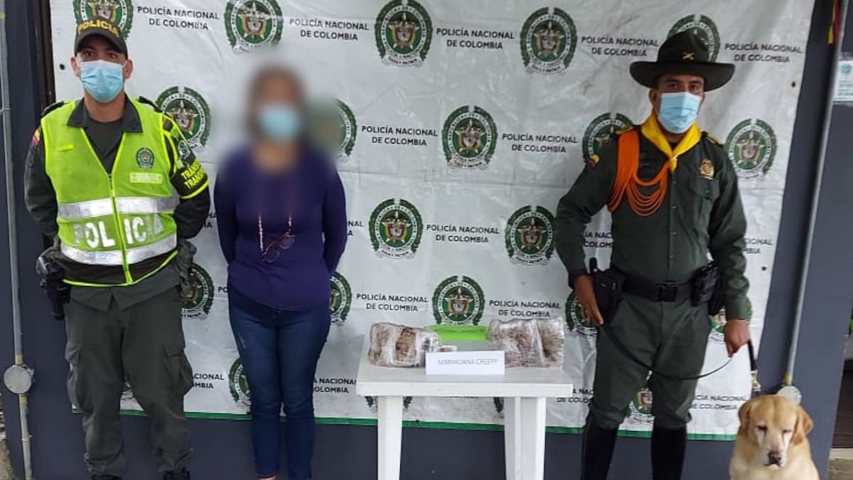 'La ciudadana se trasladaba como pasajera en un bus afiliado a una reconocida empresa que cubría la ruta Medellín con destino a Mompox, Bolívar; al verificar su maleta en la bodega de equipajes, nuestro canino ‘Lincon’, alertó sobre una posible contaminación con estupefacientes', dijo.
