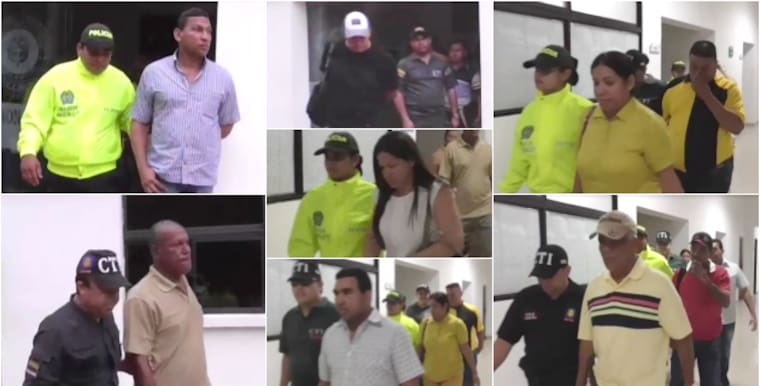 Entre tanto los otros ocho fueron cobijados con medida de aseguramiento consistente en prisión domiciliaria. Ellos son: el ex alcalde en el año 2012, época de los hechos materia de investigación, Libardo Álvarez; Jonny Galván, ex secretario de educación; Francisco Hernández, ex secretario de Planeación; Juan Dumet, interventor; y los contratistas Roger Segura, Lucely Ramos, Ana Martínez y Lucy Solano. Falta por capturar Carlos Ladeux, ex secretario de Gobierno.