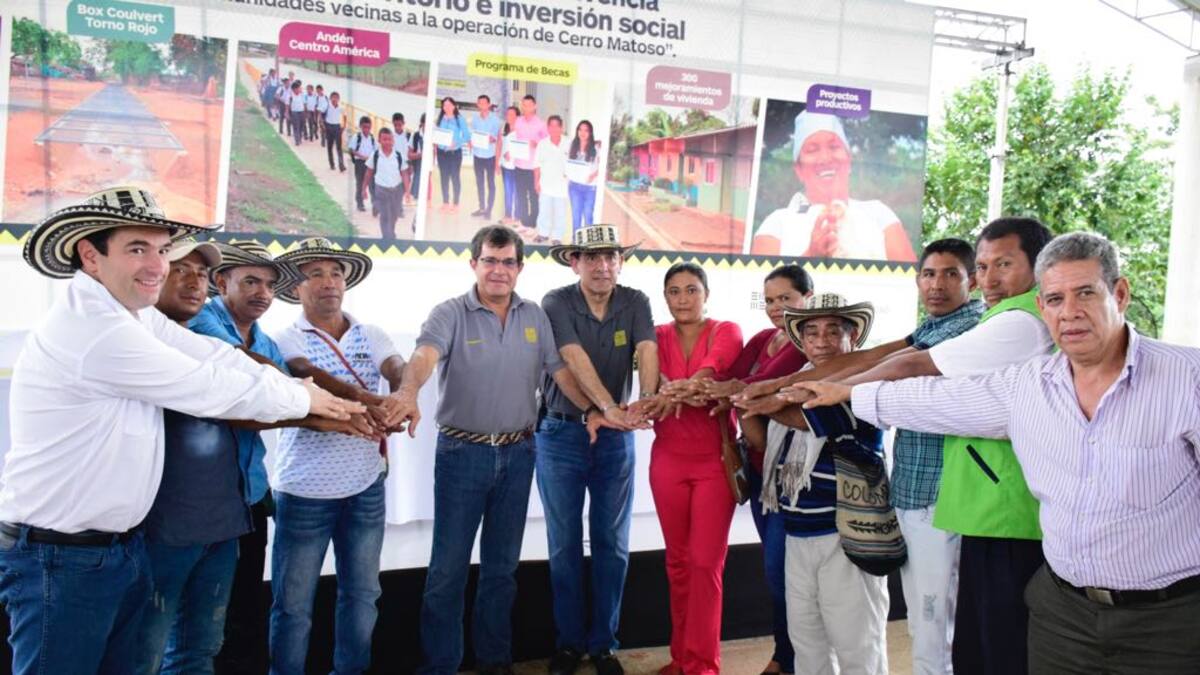 La multinacional Cerro Matoso, que desde hace cerca de 30 años explota ferroníquel en suelo del San Jorge cordobés, firmó una nueva acta de inversión social con las comunidades vecinas al área de influencia, por valor de $5 mil millones, para beneficio específicamente de los habitantes de las poblaciones Pueblo Flecha, Puerto Colombia, Boca de Uré, Torno Rojo y la Odisea.