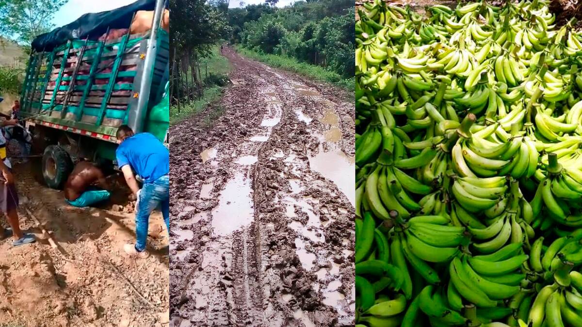 'Como se puede observar en las imágenes, es prácticamente imposible transitar por la vía, hasta los camiones diseñados para enfrentar estas trochas quedan atollados y se les hace imposible transportar las toneladas de plátano que produce esta zona nutrida del departamento de Córdoba', dice.
