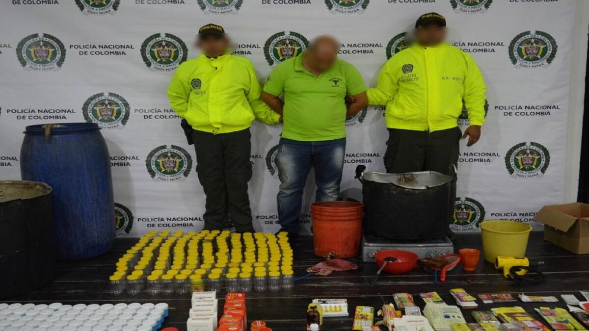 El oficial identificó al hombre detenido como John Primero Durango Dikson, de 41 años, quien de acuerdo a las investigaciones adelantadas, poseía un laboratorio clandestino en su vivienda, donde elaboraba medicamentos adulterados desde hacía aproximadamente 10 años. 'Esta persona no contaba con ningún tipo de permiso para la fabricación, comercialización y distribución de los medicamentos', agregó el coronel.