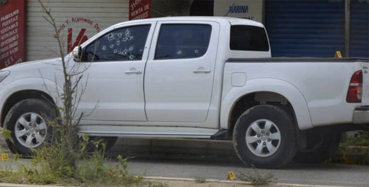 El doble crimen ocurrió hacia las 12:40 de la tarde, cuando dos sujetos en moto interceptaron la camioneta Toyota Hilux, color blanco, de placas MOS-210 de Medellín, y tanto conductor como parrillero con pistola en mano dispararon en más de 20 ocasiones contra el vehículo.