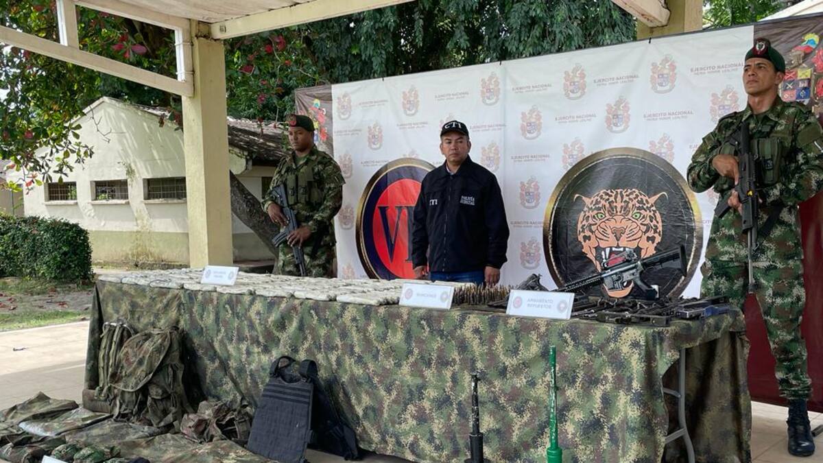 La operación militar permitió el hallazgo de más de 609 cartuchos de diferentes calibres, 11 proveedores, cañones de ametralladoras, accesorios para fusil y 2 armas de fuego, perteneciente a la Subestructura Rubén Darío Ávila.