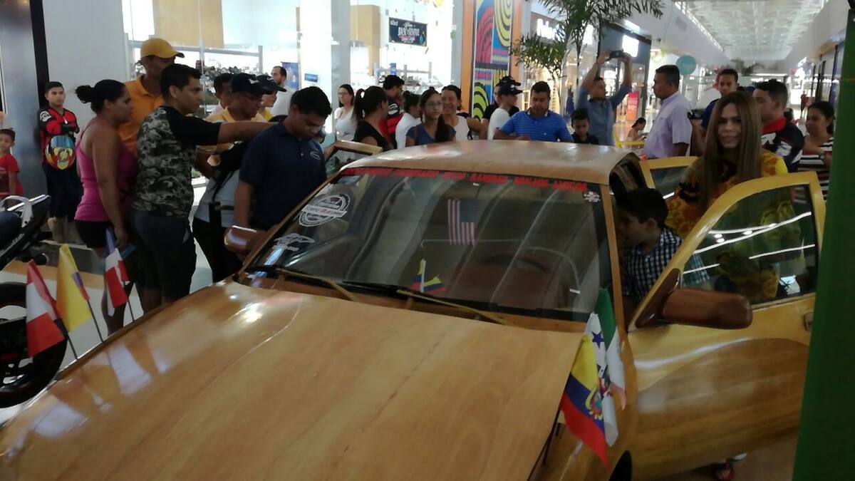 Por ahora el ‘troncomovil’ de Bienvenido es el centro de atracción en la capital cordobesa. Los usuarios del centro comercial donde está empiezan a hacer filas para hacer imágenes, tocarlo y hasta subirse frente al timón.