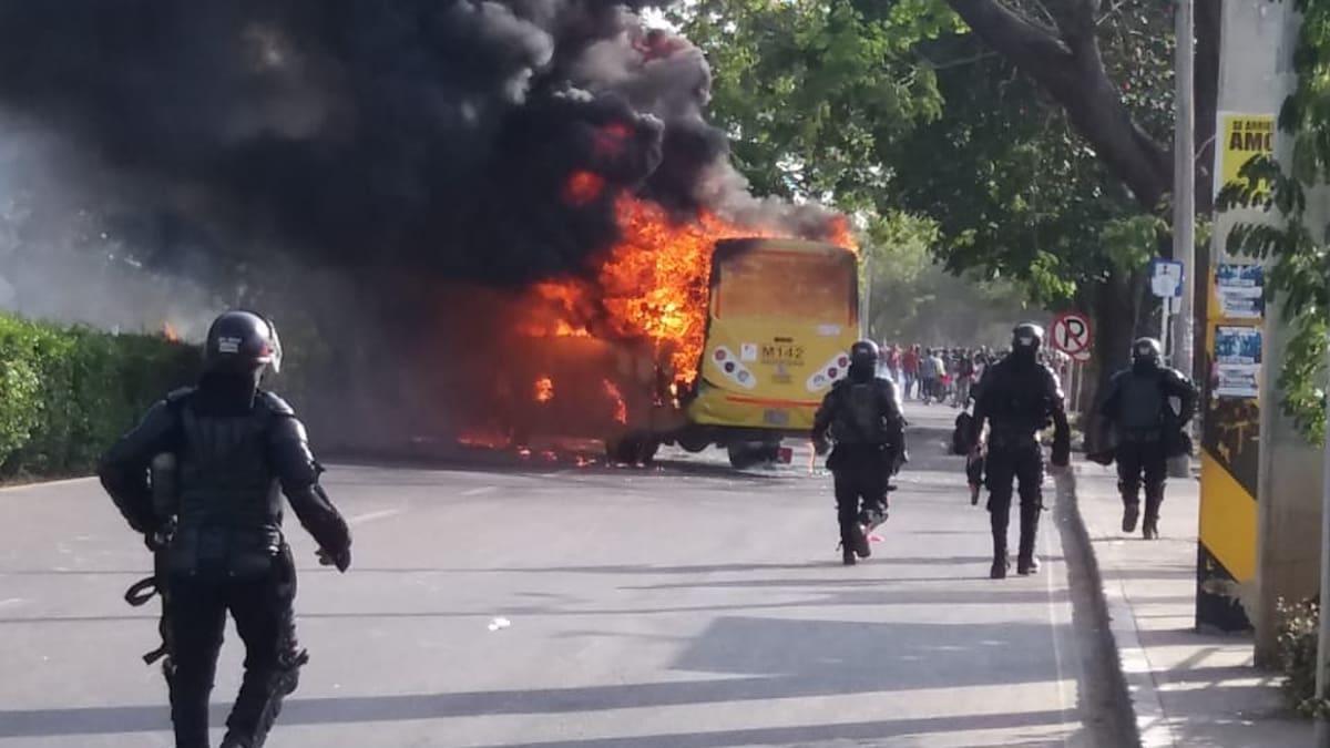 Un grupo de encapuchados, que según las autoridades salieron de la Universidad de Córdoba, le prendieron fuego a una buseta adscrita a la empresa Metrosinú, que presta el servicio público en el casco urbano de la capital cordobesa.
