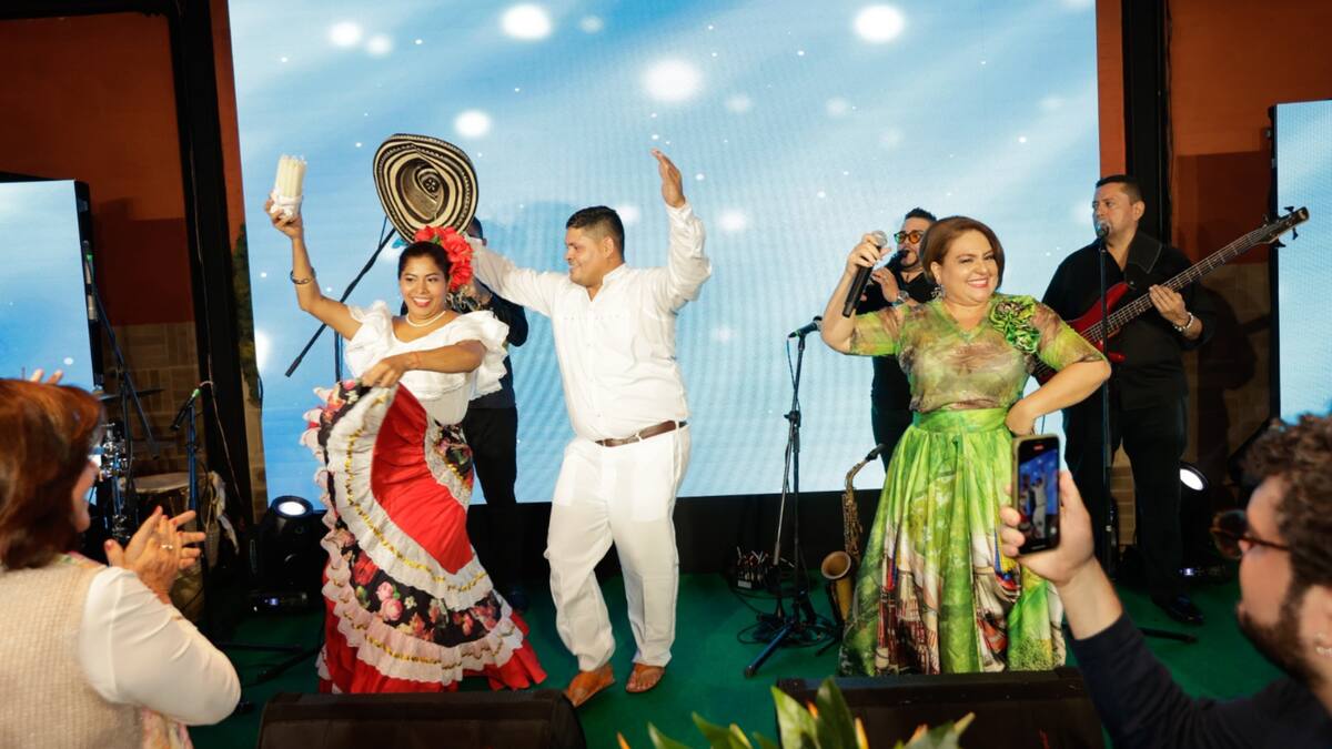 La fría noche del miércoles 24 de abril en Bogotá fue ‘calentada’ al son de los porros cordobeses entonados por su reina Aglaé Caraballo que estuvo acompañada del percusionista Rodny Teherán y de una banda pelayera.