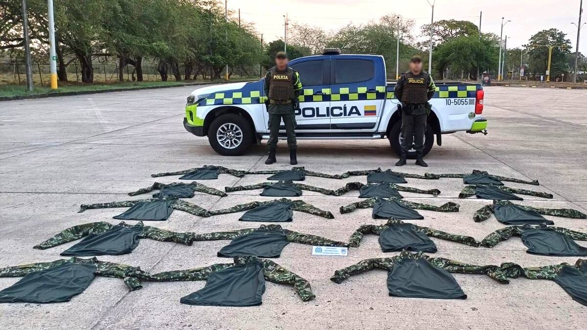 Unidades de la Seccional de Tránsito y Transporte de la Policía Nacional que prestan sus servicios en el departamento de Córdoba se incautaron, en un procedimiento de registro y control, de unas prendas militares que eran transportadas como encomienda.