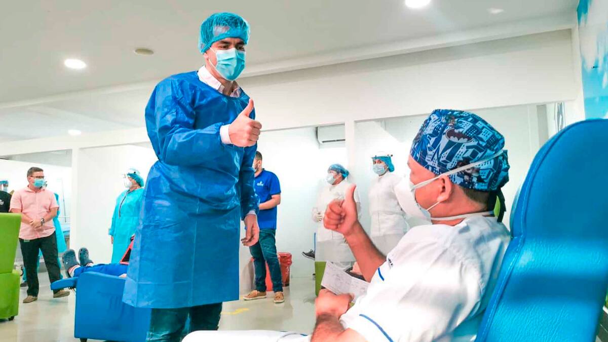 'Aquí estamos con los héroes, aquí hay una representación clara de lo que es la responsabilidad, el dinamismo, lo que es poder ayudar al prójimo y aquí está representado en este talento humano inigualable, por eso esa primera línea de atención, los que combatieron el covid de frente, sin temor alguno hoy tiene el privilegio de recibir la primera vacuna', indicó el alcalde Carlos Ordosgoitia Sanín.