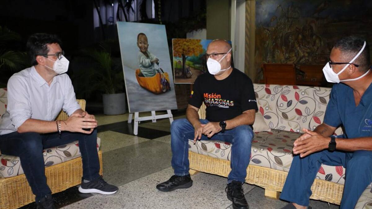 El alcalde Carlos Ordosgoitia Sanín fue uno de los primeros en conversar con el médico Intensivista, Juan Sebastián Martínez Collazos, líder del equipo de especialistas.