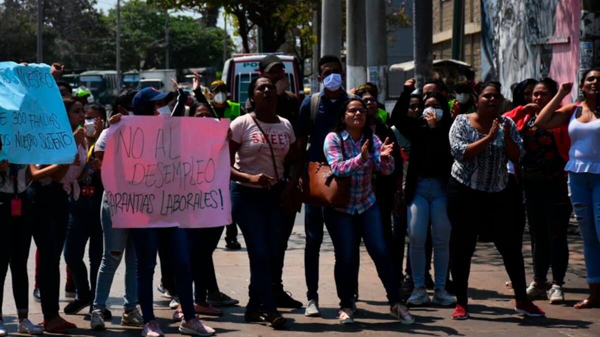La manifestación tuvo acompañamiento de la Policía quienes mantuvieron la calma mientras los empleados despedidos, en su mayoría jóvenes, se expresaban.