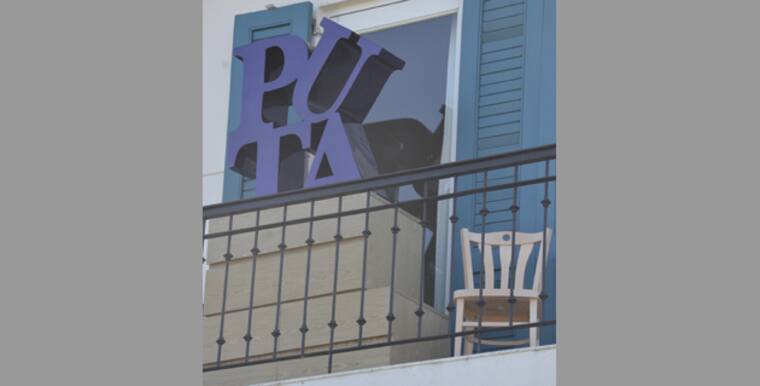 Sugerente escultura que llama la atención desde uno de los balcones del hotel.