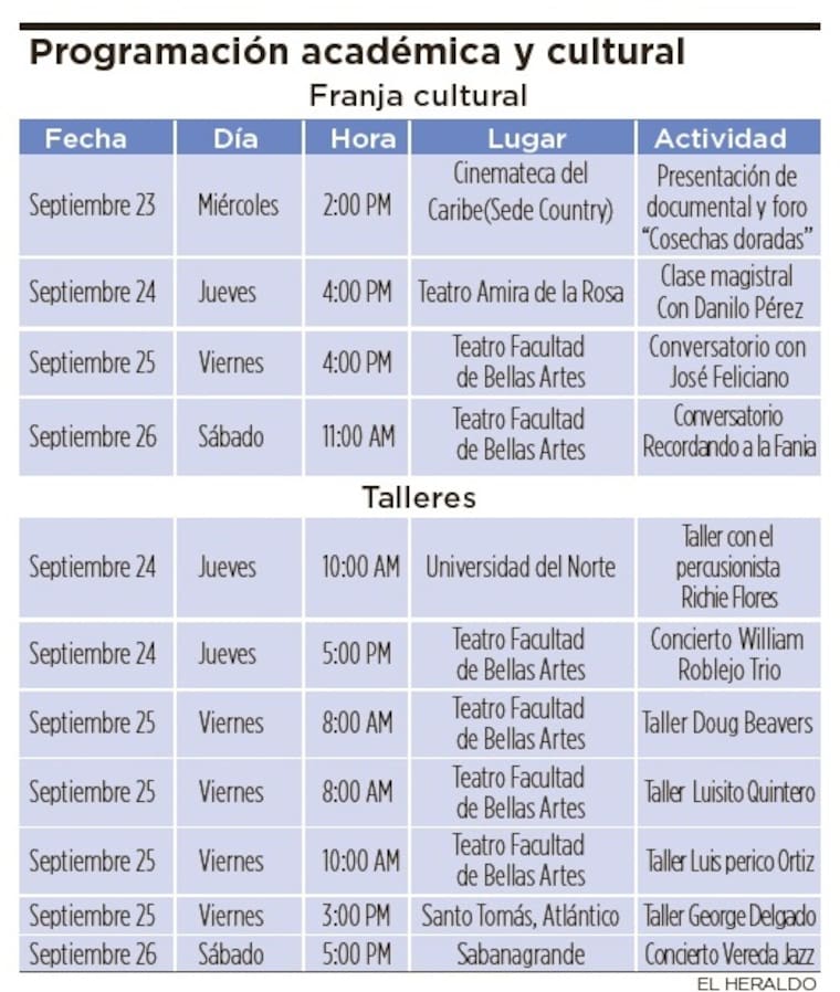Barranquijazz a la calle. El próximo viernes 25 de septiembre, en el Parque Cultural del Caribe, a las 4:00 p.m., harán sus presentaciones Lavo Ensamble (Israel), Retrojazz (República Domicana), Redil Cuarteto y Freddy Colorado, y Vereda Jazz (estos dos últimos, de Colombia).