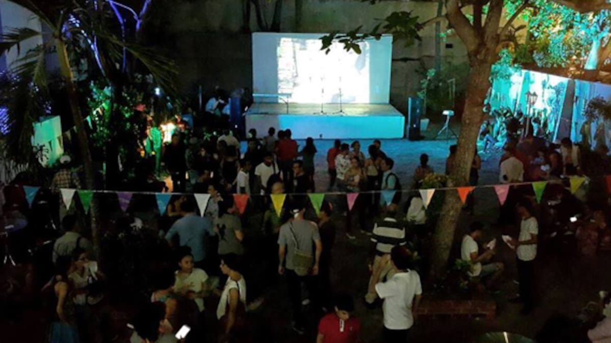 Bajo la lluvia, se realizó este viernes el lanzamiento oficial del festival en el Patio Tropical de la Alianza Francesa., con una fiesta que contó con las mezclas de DJ ‘Hoyo Negro’ desde las 7:30 de la noche.
