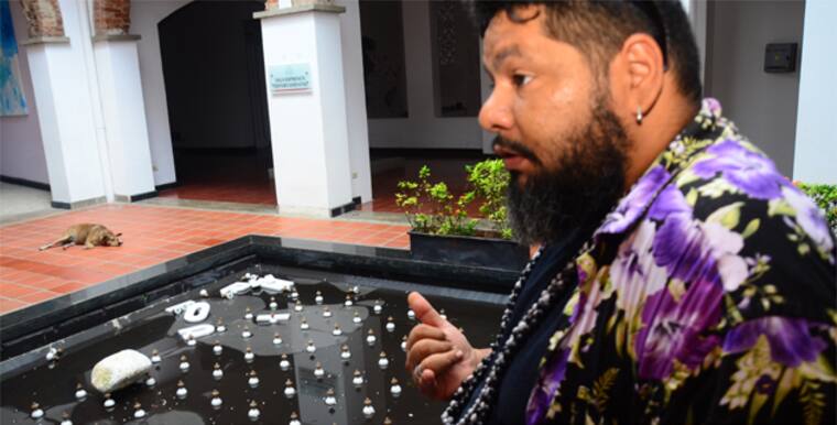 Esta pieza, que representa el caos y la contaminación del río Magdalena, según el artista, habla sobre el lavado del dinero, el procesamiento de la obra, el micro y macrovendedor.