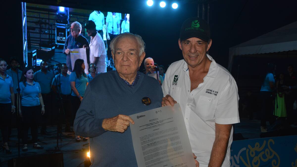 La entrega se realizó en el marco del Festival de Coros ‘Un mar de voces’, en el natural escenario del Gran Malecón del Río, en medio de una fresca tarde y con las voces de una masa coral interpretando ‘Prende la vela’, con arreglos del maestro, un momento que conmovió a los asistentes, que le respondieron con sentidos aplausos.
