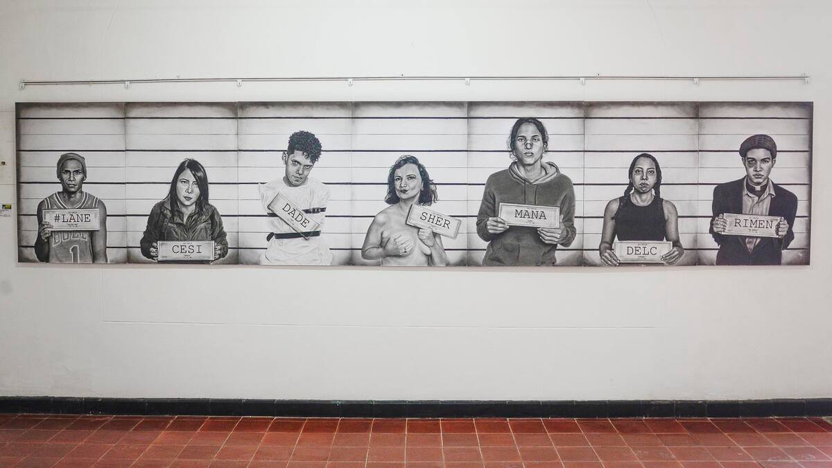 Lane, Cesi, Dade, Sher, Mana, Delc y Rimen. Cada uno sostiene un letrero con su nombre y posa a su manera para la fotografía de su propia captura, cada quien culpable de su propio delito. Si se revisa con detalle los ‘alias’, juntos conforman una frase: 'La necesidad es hermana del crimen'.