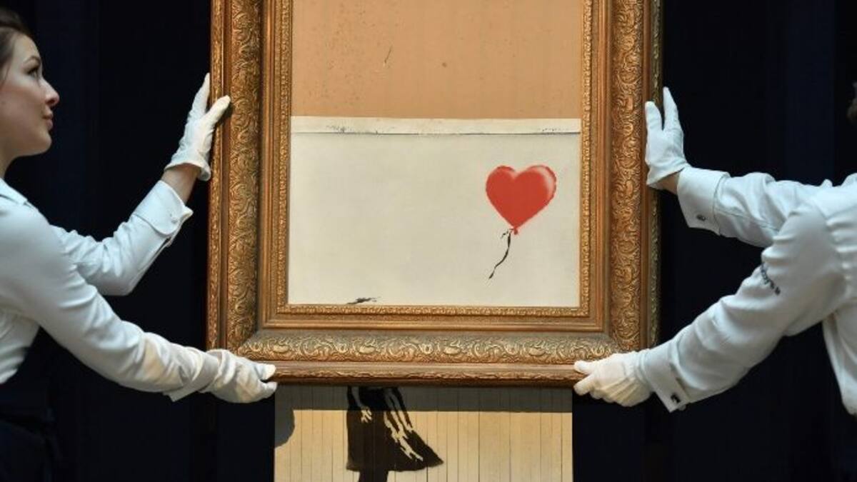 La obra había salido a subasta en Londres. Su autor había integrado un mecanismo en el espeso marco dorado que permitía rasgar la obra Girl with Balloon, una reproducción en acrílico y aerosol de una de sus pinturas más conocidas de 2006 —una niña que deja volar un globo rojo con forma de corazón—.
