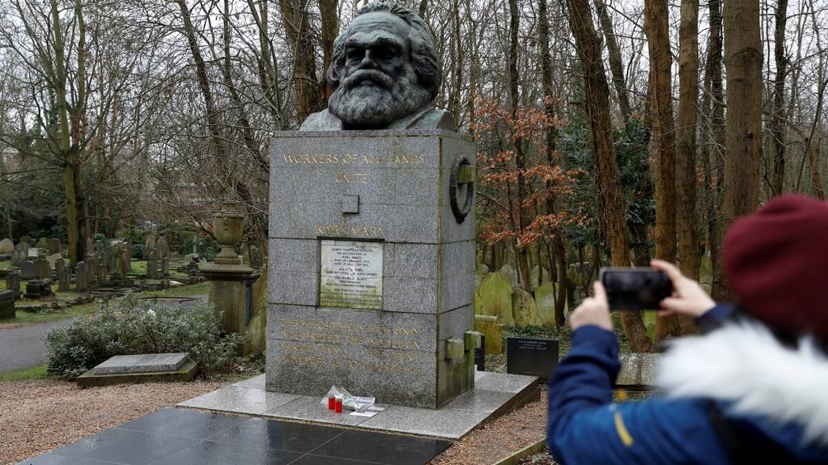 El filósofo alemán, autor de 'El Capital', es una de las más famosas personalidades enterradas en el cementerio de Highgate, situado en el norte de Londres. Bajo un gran busto de Marx, financiado en 1956 por un fondo establecido por el Partido Comunista británico, puede leerse 'Proletarios del mundo, uníos'.