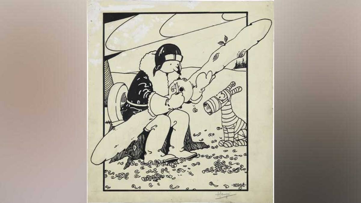 La ilustración vendida en Dallas el sábado, en tinta china con retoques a la aguada, está firmada por Hergé: es el diseño que había entregado al periódico para imprimirlo en la portada.