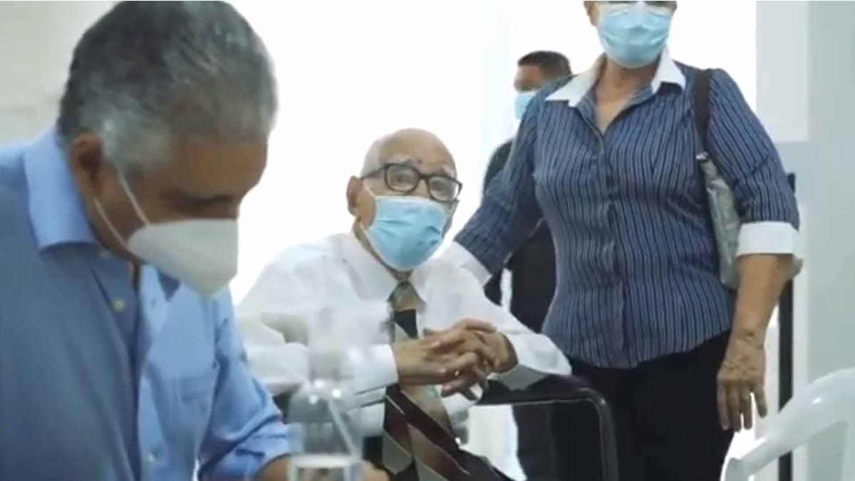 El maestro Rafael Campo Miranda, célebre por ser el compositor de temas como Lamento Náufrago, Pájaro Amarillo, Playa, brisa y mar, y muchos otros éxitos, dio ejemploi recibiendo, a sus 102 años, la primera dosis de la vacuna contra la covid.