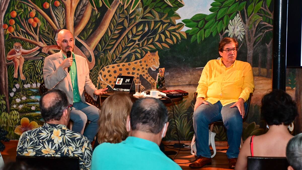 El historiador español Álvaro Santana, autor del libro ‘Ascenso a la gloria’, exploró en una espléndida charla, en La Cueva, con el director de la Fundación Gabo, Jaime Abello Banfi, sobre cómo la solemne obra literaria de García Márquez, ‘Cien Años de Soledad’, llegó a consolidarse como una de las joyas de la literatura universal, de todo ese camino que recorrió para llegar a la cima. Él se encargó de caminar todos los lugares que evoca ‘Gabo’ en su historia.