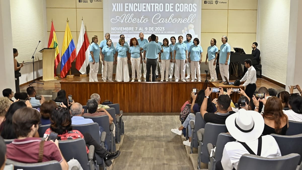 Este martes, 7 de noviembre, barranquilleros le dieron la bienvenida a más de 50 músicos que se dieron cita en el auditorio Mario Santodomingo, en la plaza de la Aduana, donde músicos se unen en el XIII ENCUENTRO DE COROS ALBERTO CARBONELL, adscrito a la Secretaría de Educación a través del programa musical Río y Mar , que tiene como propósito generar un espacio de bienestar para los docentes y contribuir con el desarrollo musical del municipio y su proyección a la comunidad.