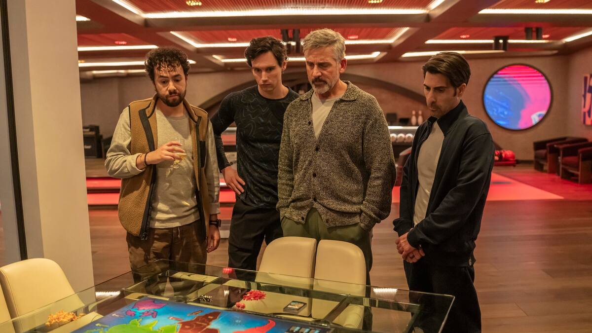 La película reúne a un grupo de amigos multimillonarios —interpretados por Steve Carell, Jason Schwartzman, Cory Michael Smith y Ramy Youssef— en medio de un escenario apocalíptico provocado por una tecnología que uno de ellos lanzó al mundo.