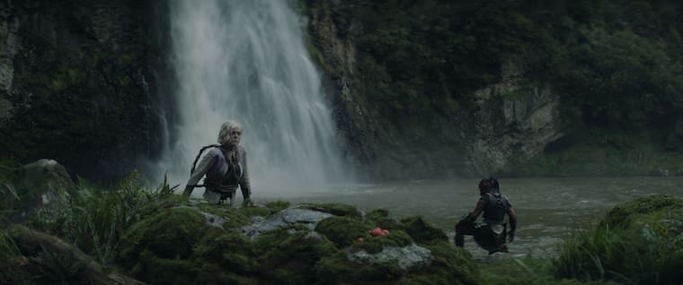 La actriz, que filmó gran parte de sus escenas suspendida en el aire o enterrada en el suelo, asegura que el rodaje fue un reto físico y emocional: “Pasé horas colgada de un arnés, con las piernas atadas, y Dimitrius cargándome por colinas y pantanos. Había días en que literalmente era su mochila”, dice. “Pero esa cercanía física ayudó a construir la relación entre Thia y Dek. La historia es, en el fondo, sobre dos seres rotos que aprenden a confiar el uno en el otro”.