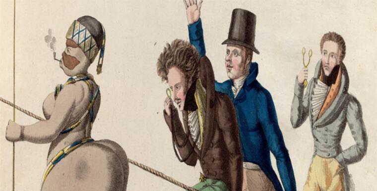 Sawtche llegó a Londres en 1810 –tenía dieciséis años– de la mano de Dunlop. Y de su mano fue denigrada de manera inmisericorde. Él la exhibió en Londres y Holanda como una atracción de circo dejando que aquellos que quisieran –y a cambio de dinero– tocaran sus llamativas nalgas. La esclava había accedido bajo la creencia de que se haría muy rica, según la versión de algunos, aunque según otros fue objeto de engaños por parte de Dunlop, que, además, la obligó a firmar un contrato –Sara era analfabeta– en el que ella lo autorizaba a comerciar con su portentoso trasero. Durante las exhibiciones ella hacía todo lo que le indicaba Dunlop para que la gente pudiese asombrarse o burlarse de sus nalgas.