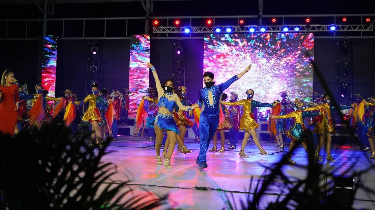 En una ceremonia híbrida, en parte presencial y en parte virtual desde varias ciudades, artistas de diferentes rincones de Colombia mostraron la diversidad del país, comenzando por la cantaora tradicional del Pacífico Zully Murillo, quien interpretó el himno nacional acompañada en la marimba por Moisés Zamora, en vivo desde Cali.