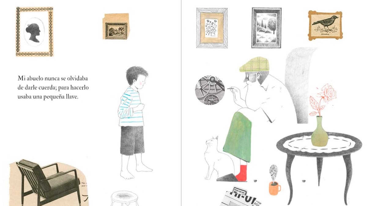 En la casa de Samuel había un reloj de cuerda al cual, cada cierto tiempo, había que ajustar…dándole cuerda. Esa era una labor del abuelo. La escena inicial es una fotografía familiar que el ilustrador Samuel Castaño evoca para convertirla en un cuento para niños: El tiempo de mi casa. En su historia, el tiempo se descontrola a causa de una dolorosa muerte.