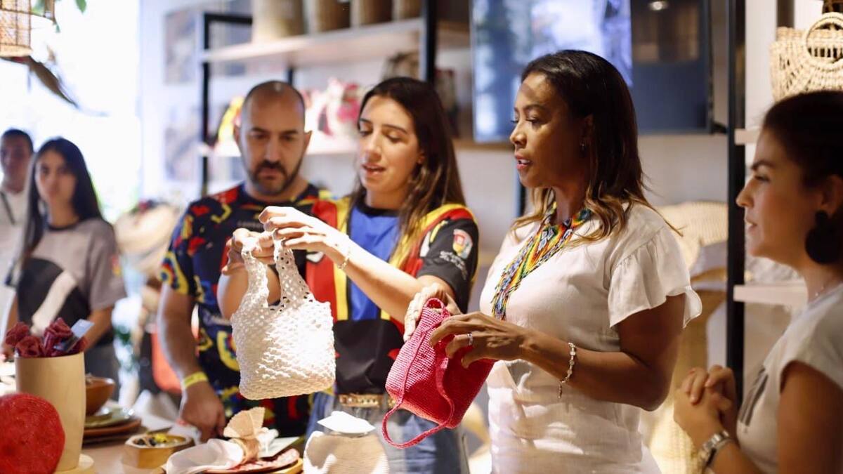 En la vitrina artesanal, la funcionaria estuvo acompañada por el viceministro de la Creatividad y la Economía Naranja, Felipe Buitrago; la secretaria de Cultura y Patrimonio, Marcela Dávila, y artesanos de diferentes municipios, quienes exhibieron sus obras, elaboradas en tallado de madera náufraga, bejuco, palma de iraca, barro, palma amarga, entre otros materiales.