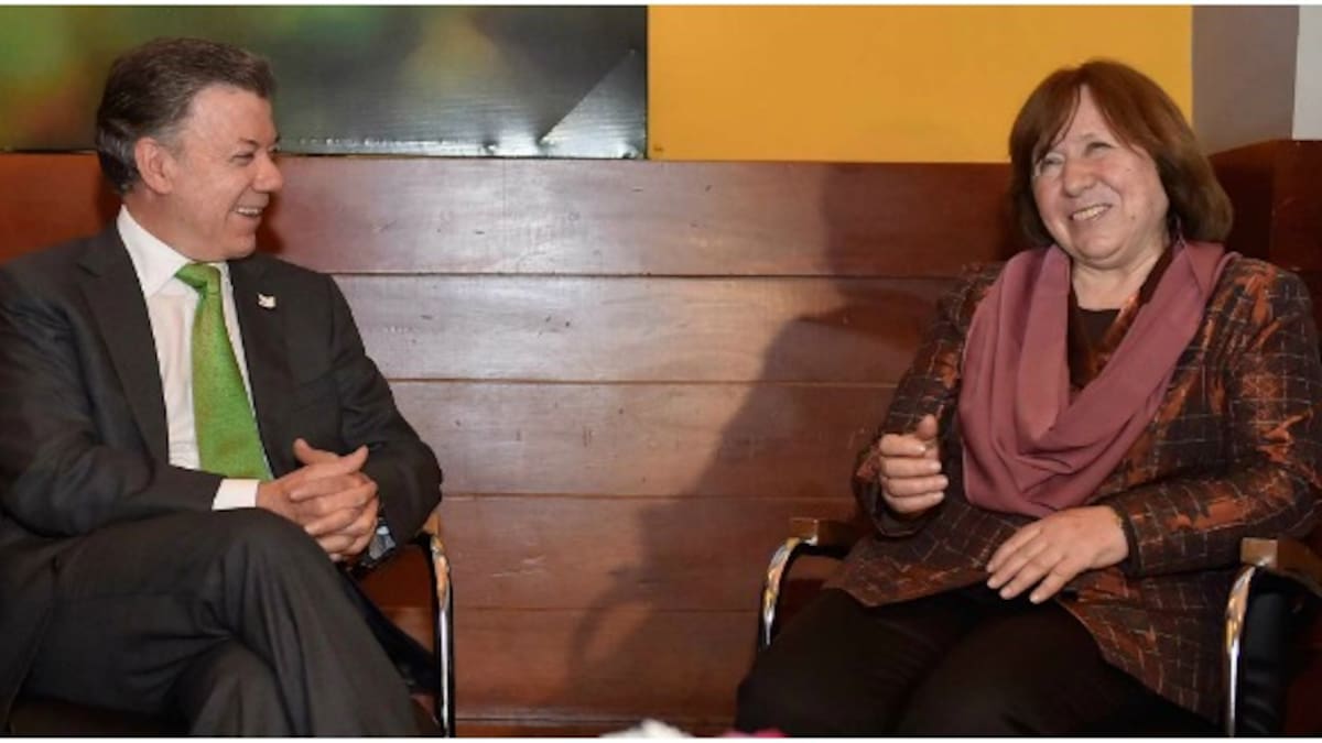 El presidente Juan Manuel Santos se reunió este martes con la escritora y periodista bielorrusa Svetlana Alexievich, Premio Nobel de Literatura 2015, quien llegó a Colombia invitada a la 29a Feria Internacional del Libro de Bogotá.