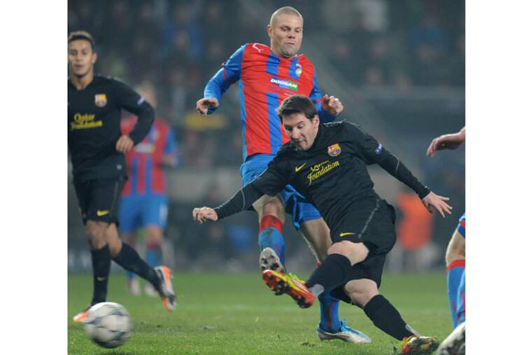 El delantero argentino Lionel Messi superó ayer los dos centenares goles como jugador del Barcelona marcando una nueva tripleta en el triunfo 4-0 de su equipo como visitante frente al Viktoria Plzen de República Checa en Liga de Campeones. Messi situó su registro en 202 tantos, a solo 33 del récord del mítico delantero azulgrana César.
