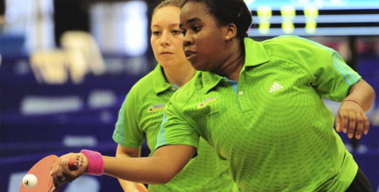 Paula Medina (d) y Leidy Ruano, en el tenis de mesa.