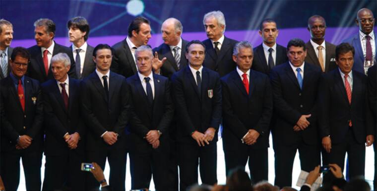 Los técnicos de las selecciones posaron después de efectuarse el sorteo.
