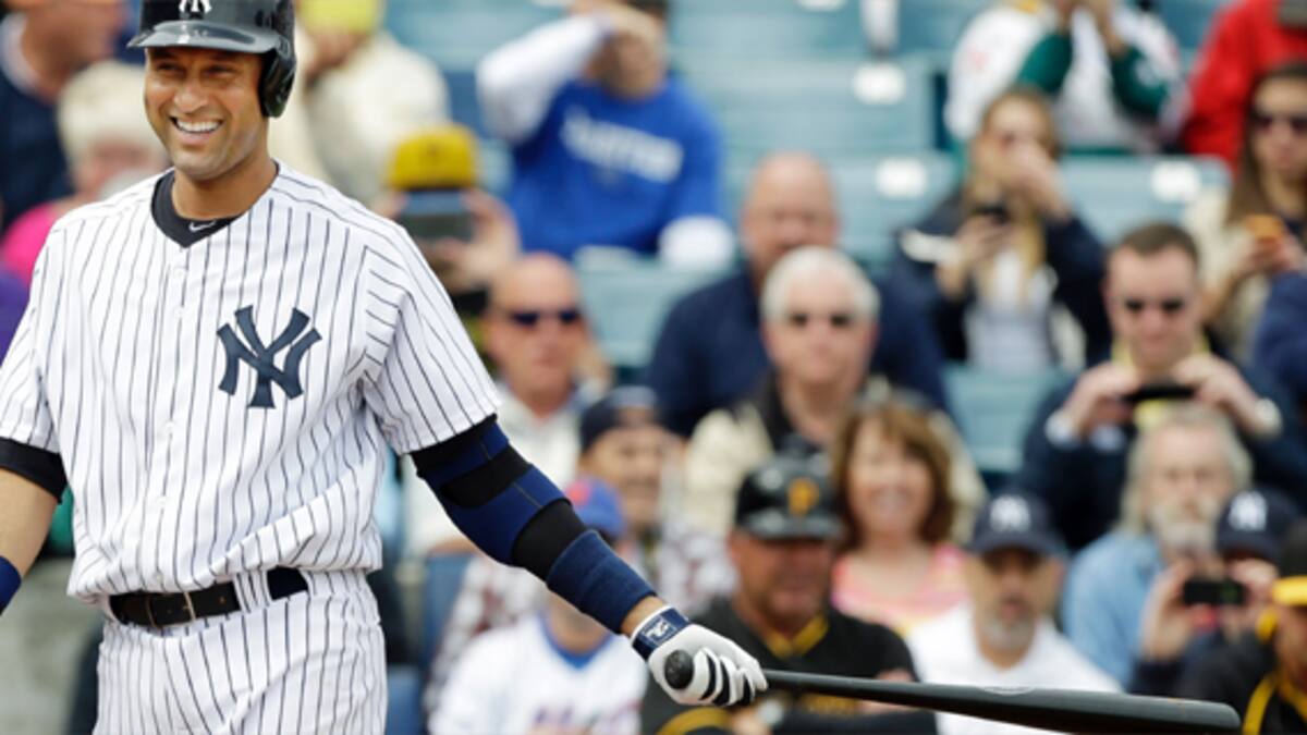 Derek Jeter, quien se retirará como pelotero activo al final de la próxima temporada, reapareció ayer con los Yanquis de Nueva York en el primer juego oficial de la Liga de la Toronja ante los Piratas de Pittsburgh, el cual se disputó en el George Steinbrenner Field.