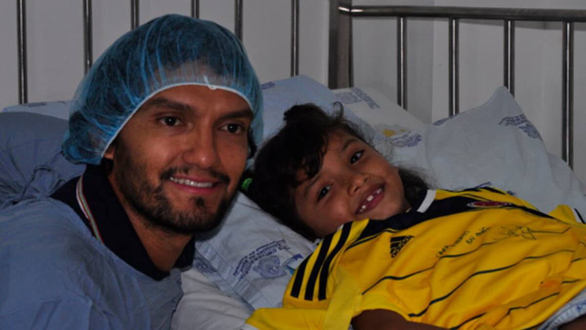Aguilar, indispensable en el esquema táctico del técnico argentino José Pékerman, fue también fundamental para la entrega de camisetas y regalos a los niños hospitalizados en el Camino Universitario Distrital Adelita de Char.