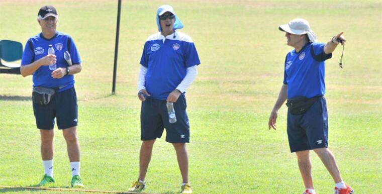 Julio Comesaña, Carlos M: Hoyos y esteban Gesto dirigen el entrenamiento.